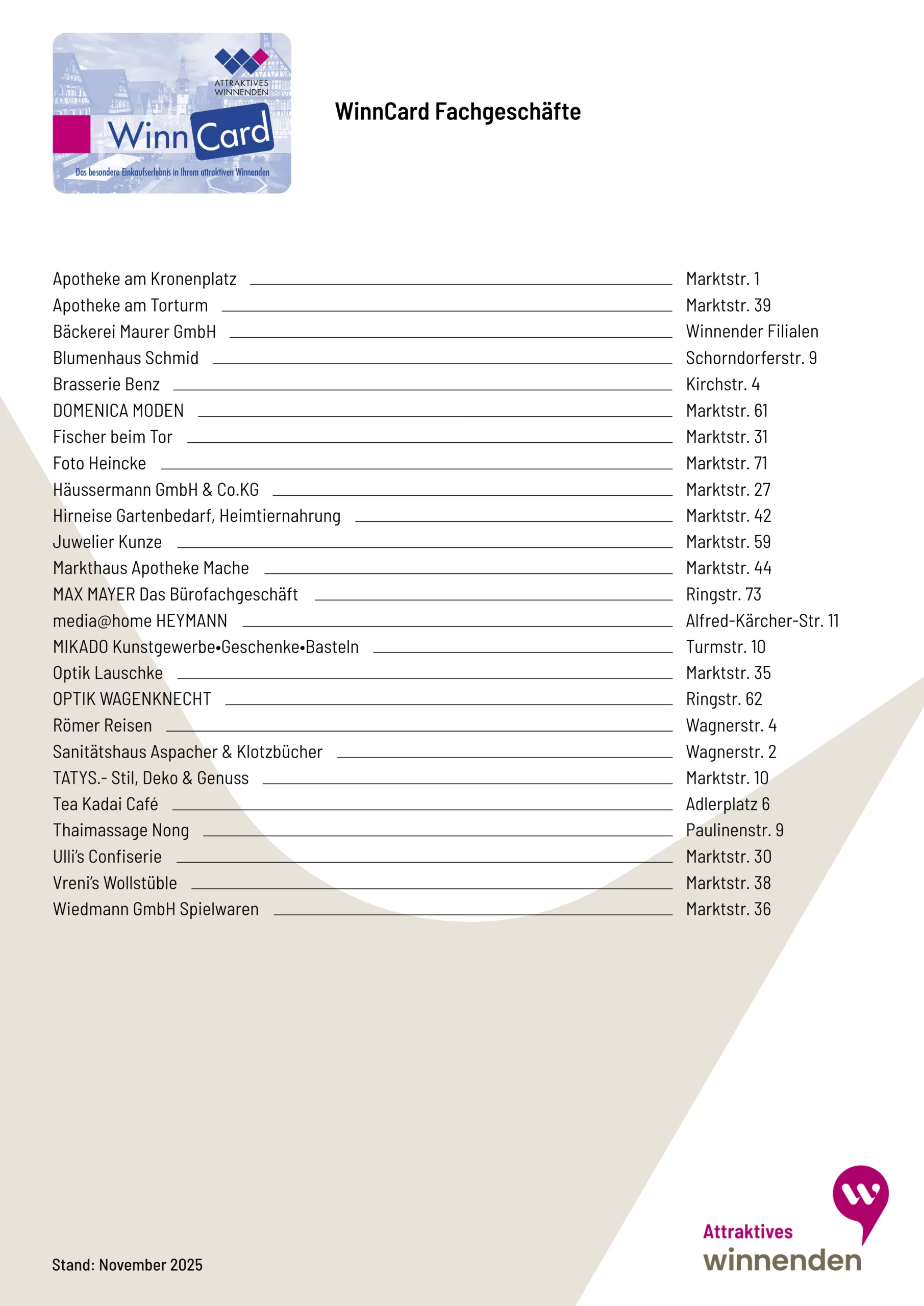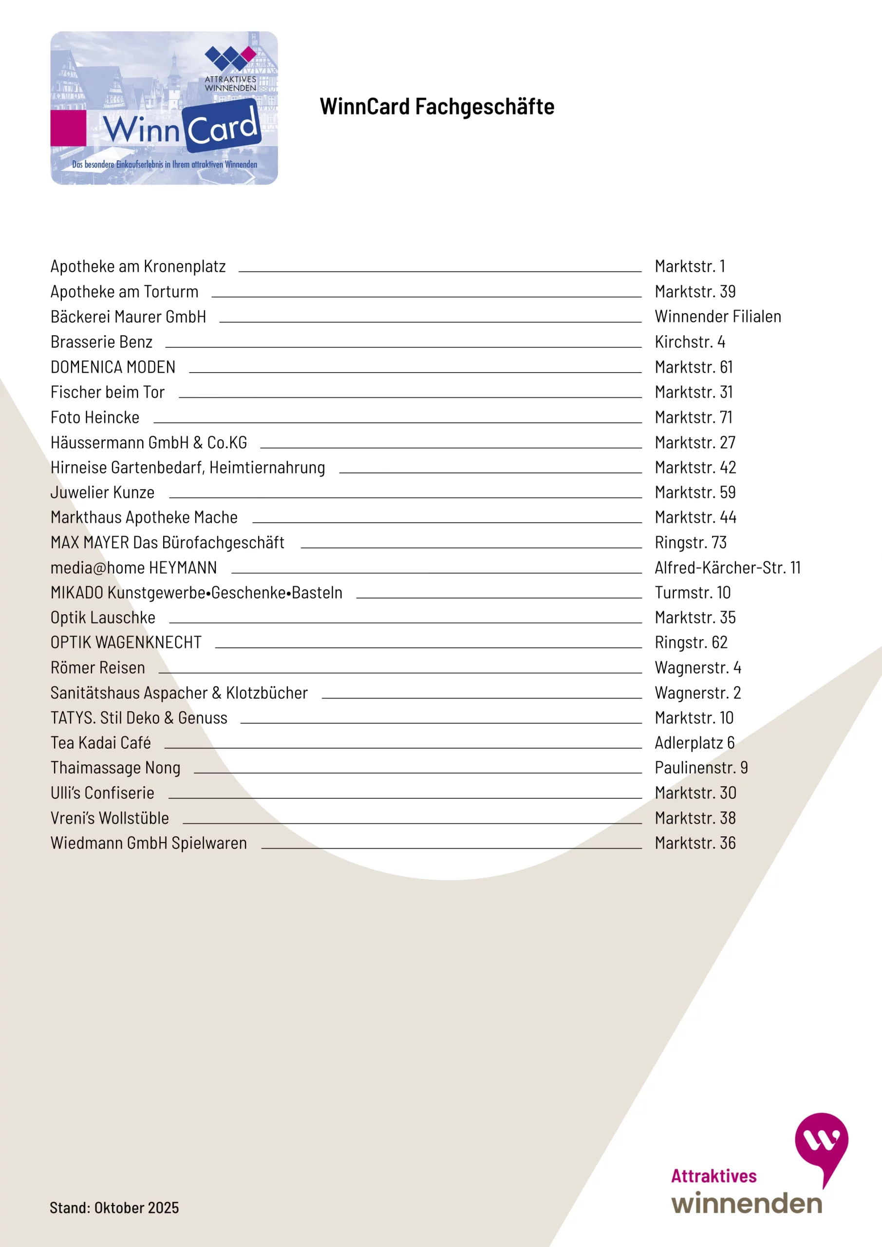 Alle Daten, die durch die WinnCard gewonnen werden, bleiben in den Händen des Vereins „Attraktives Winnenden“, siehe AGB.